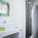 O pequeno-almoço gratuito é servido diariamente das 08:30 às 10:30. O bar da piscina oferece um lugar para relaxar. Ele oferece salão, e tem vista para o jardim. Uma variedade de restaurantes como Kuzina Mykonos e Apaggio Restaurant oferecem especialidades da cozinha Mediterrane a 12 minutos de distância a pé.